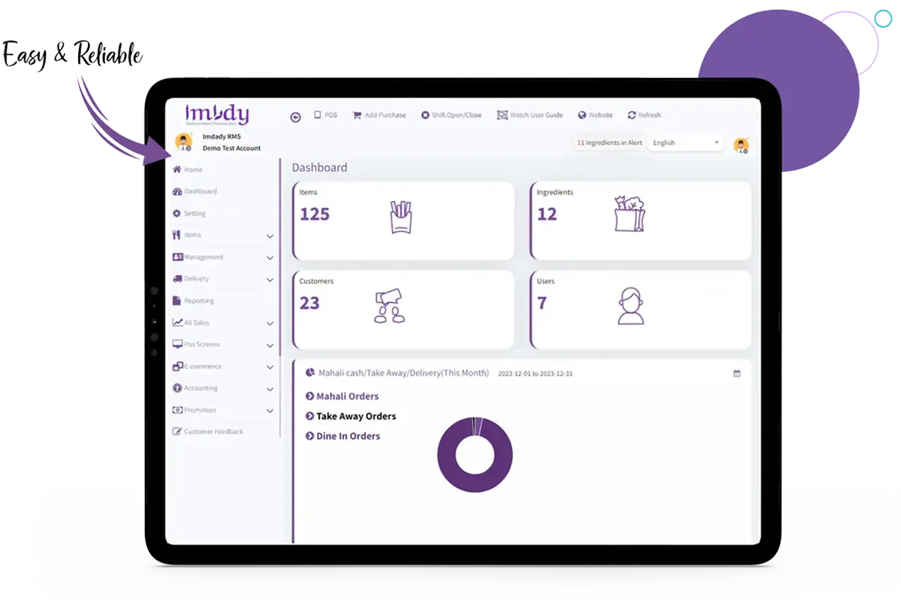 Imdady is an all-inclusive POS and restaurant management solution tailored to adapt to all your needs and goals. Manage all restaurant operations from orders to inventory in one platform.