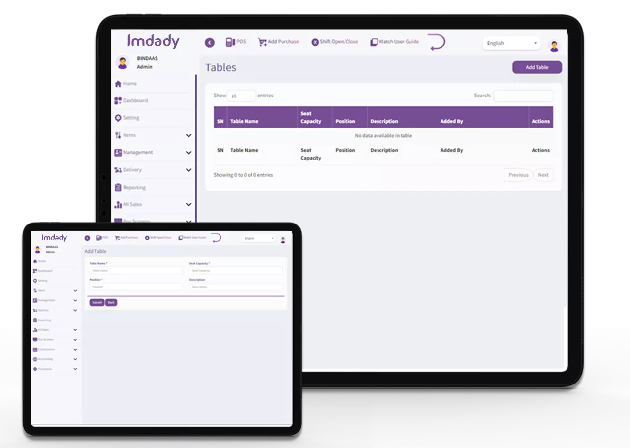 From table management and running orders, to an app that lets your waiters take orders directly on a tablet, Imdady POS system for restaurants will help you run your restaurant's dine-in business with incredible efficiency.